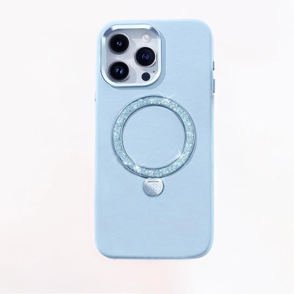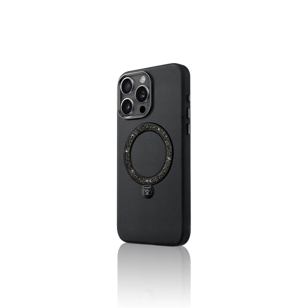 Apple iPhone 15 Pro Max Kılıf Magsafe Şarj Özellikli Standlı Suni Deri Tasarımlı Pynana Dancing Circle Serisi Kapak